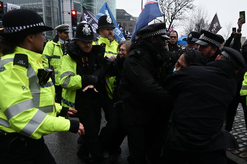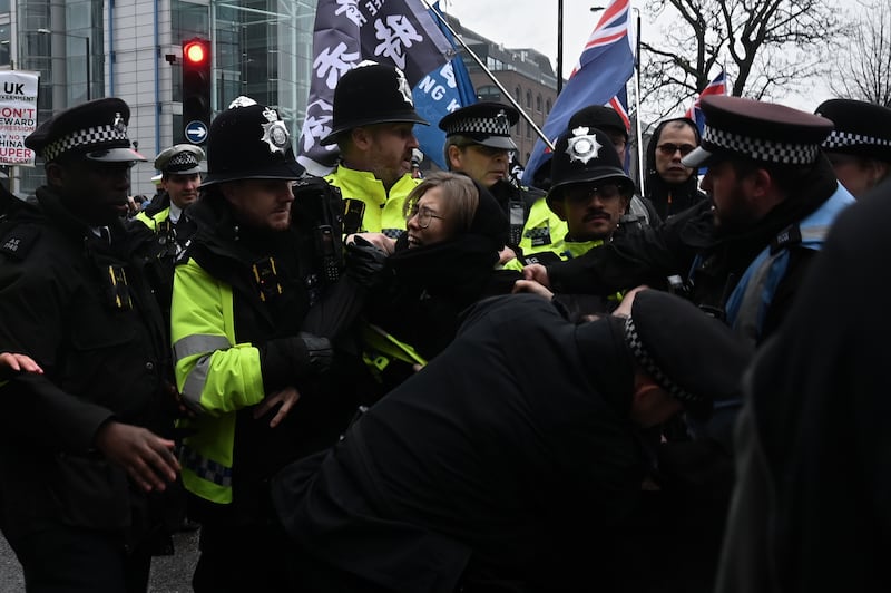 大倫敦警方(Met Police)向本台確認,以涉嫌違反《公眾秩序法》(Public Order Act)第14條拘捕二人。據本台了解,被捕的男、女示威者,分別在英國時間周六晚上10時和周日凌晨3時獲釋。而男示威者將被檢控,3月10日在西敏裁判法院(Westminster Magistrates’ Court)提堂。另一名被捕者獲准保釋,至5月初再作進一步調查。